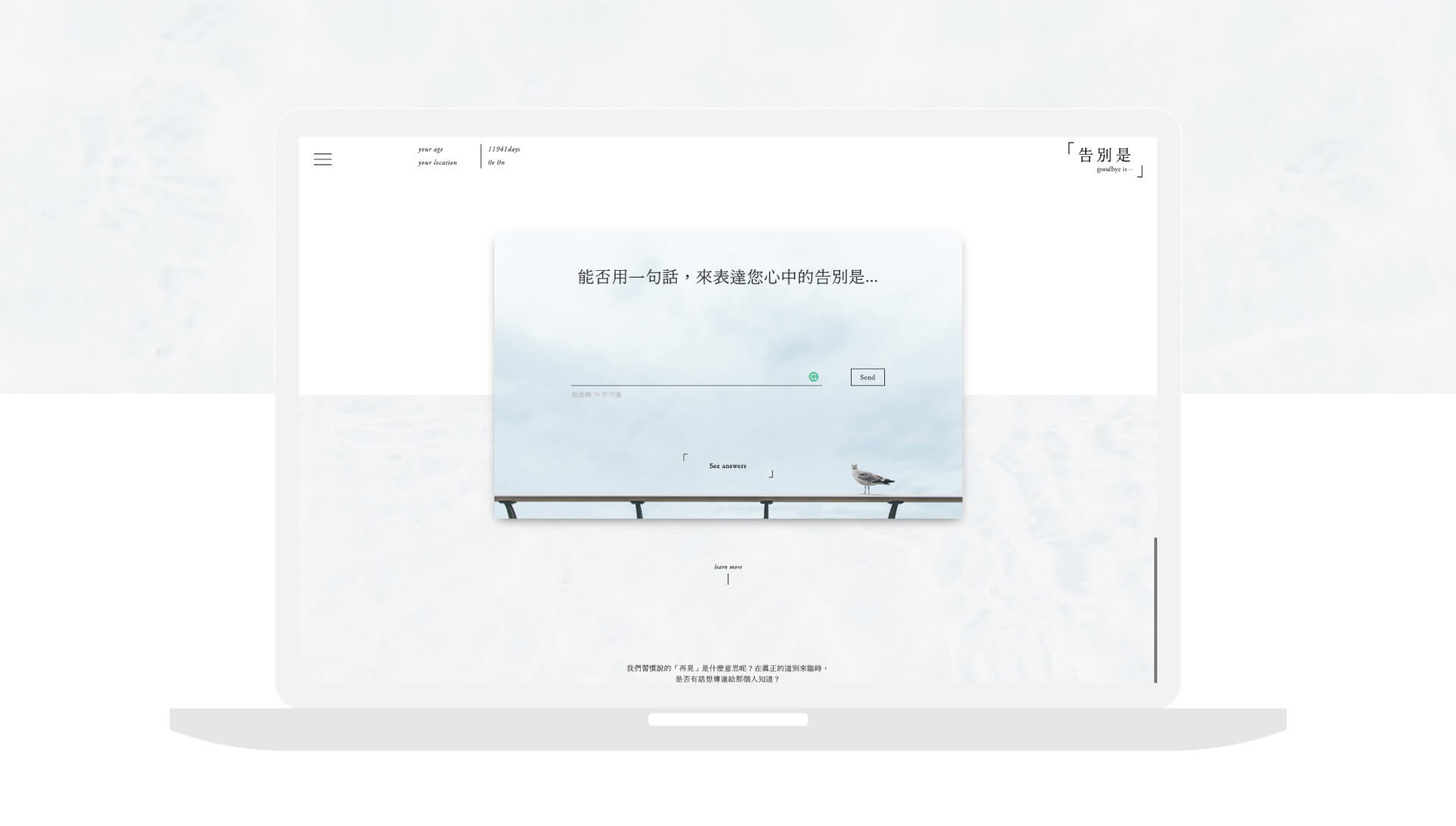 In order to allow the last major event in life to go smoothly, we created a communication platform for “saying goodbye.” The “Goodbye is” experience allows you to record your voice and words, ideas and choices regarding “saying goodbye” and communicate them to your loved ones.
