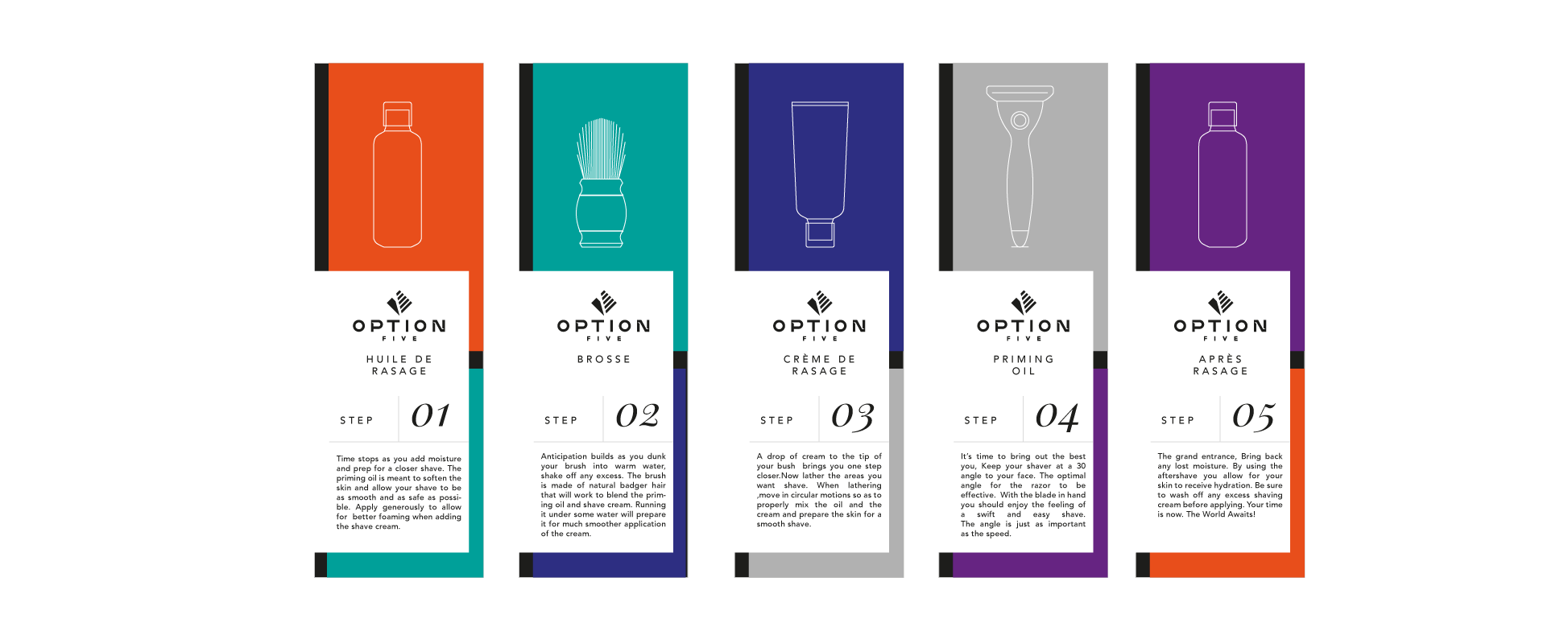 along the the core product, Option Five released a range of skin care products to aid in the shaving process.